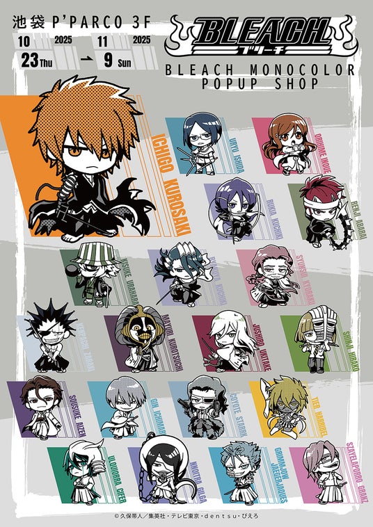 株式会社コンテンツシード(本社:東京都品川区、代表取締役:大塚 則和)は、2025年10月23日(木)より池袋P’PARCO3FにてBLEACH MONOCOLOR POPUP SHOPを開催いたします。