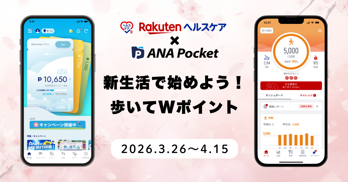 「ANA Pocket」と「楽天ヘルスケア」初のコラボ企画「...