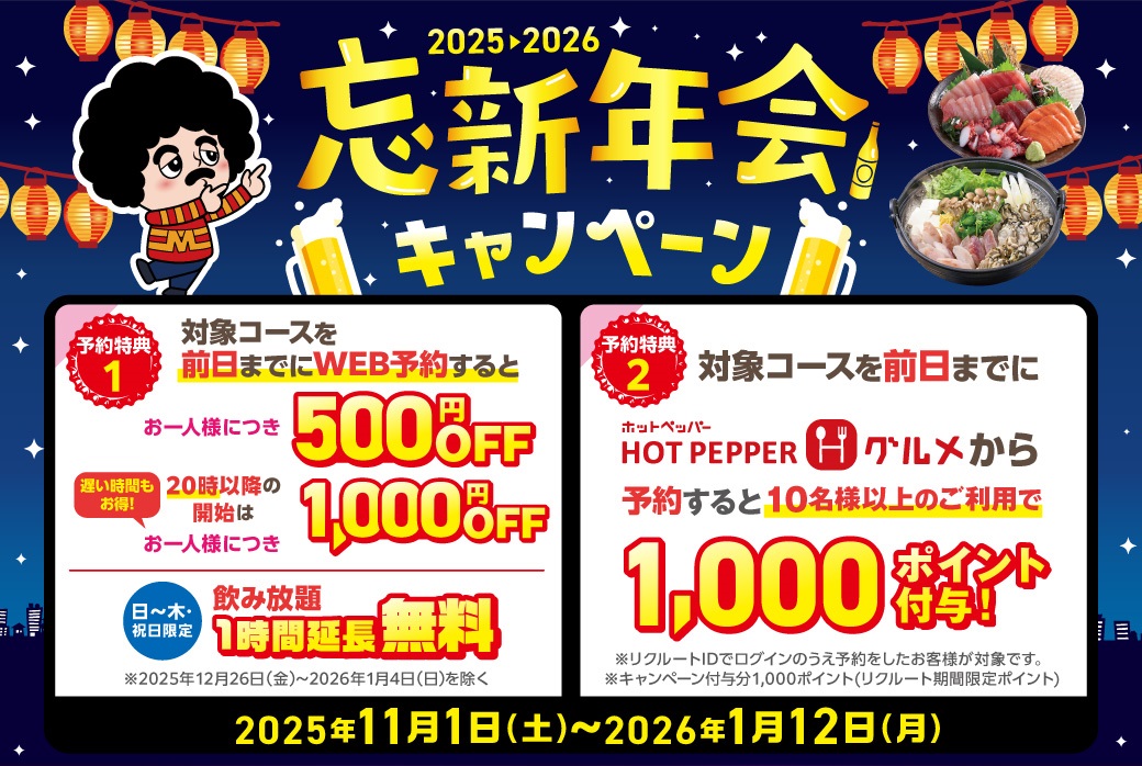 【幹事様必見!】忘新年会は全国の(株)モンテローザの対象店舗...