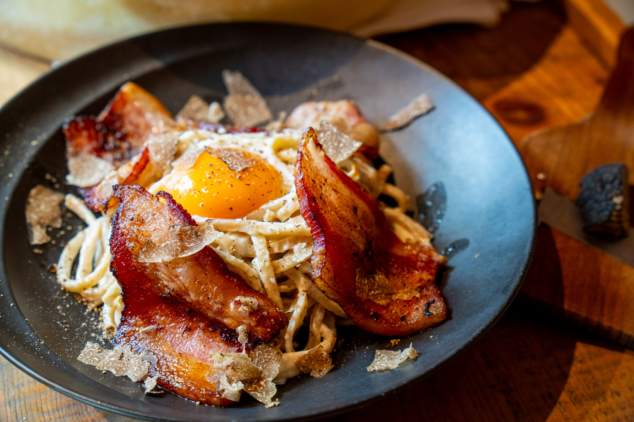 【新商品】燃えるチーズの中で仕上げるパスタ「厚切りイベリコ豚...