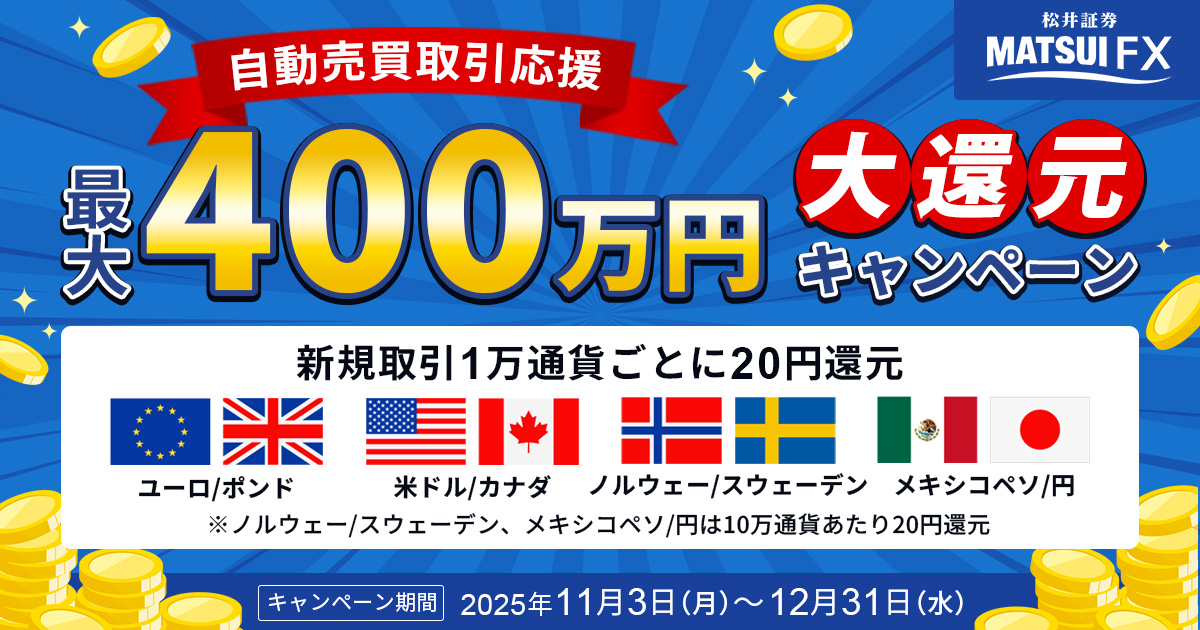 FX取引で最大400万円のキャッシュバック!自動売買応援キャ...