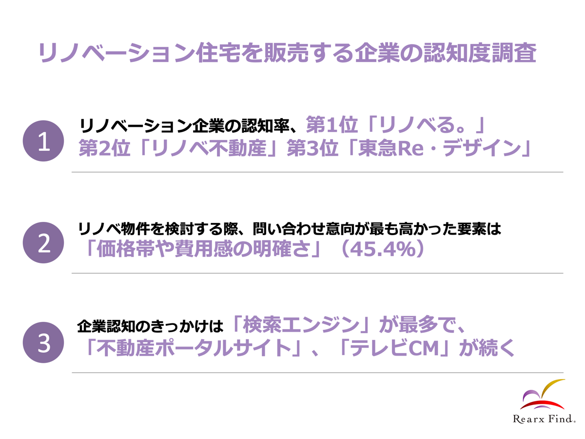リアークスファインド、リノベーション住宅企業の認知度調査を実...