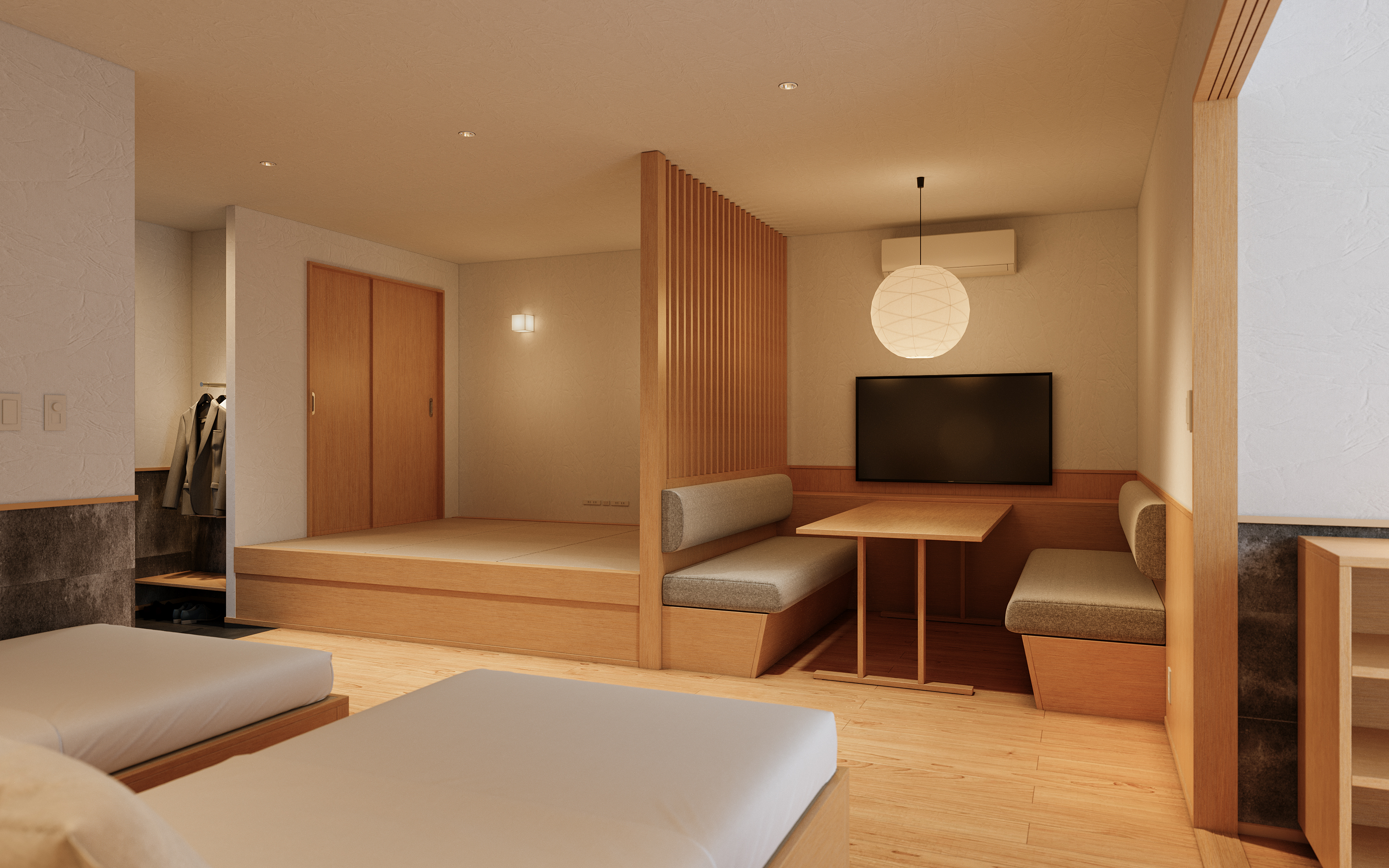 老舗旅館「一の湯」がユニバーサル対応に向けた改修中の新客室、...