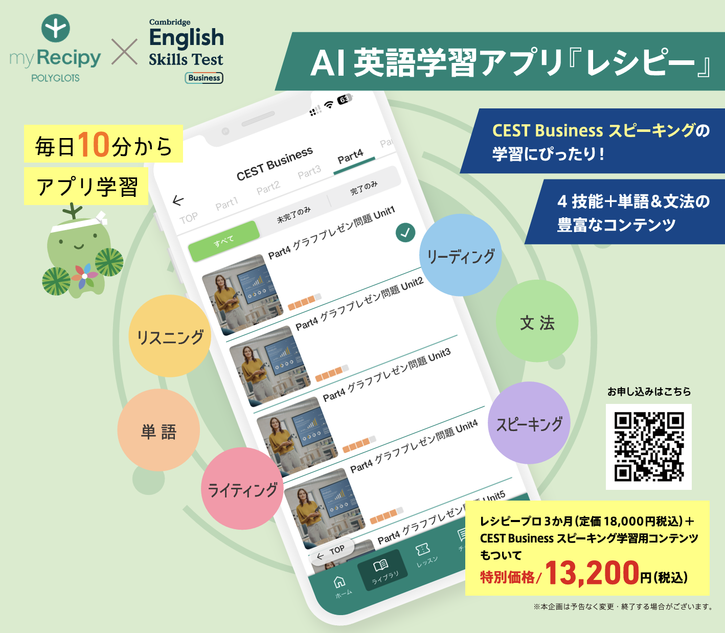 AI英語学習アプリ『レシピー』にCEST Business(...