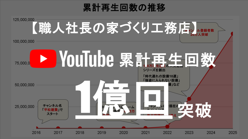 平松建築、YouTubeチャンネル総再生回数1億回を突破