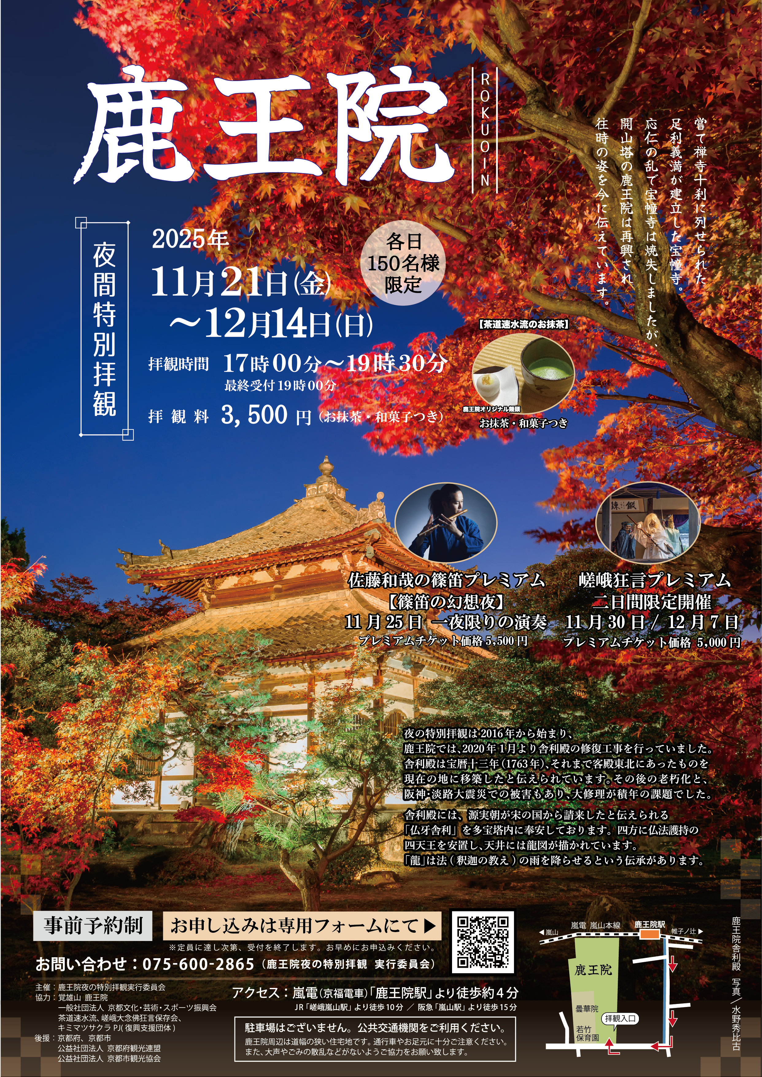 【1日150名限定】京都紅葉隠れスポット 嵐山 鹿王院夜の特...