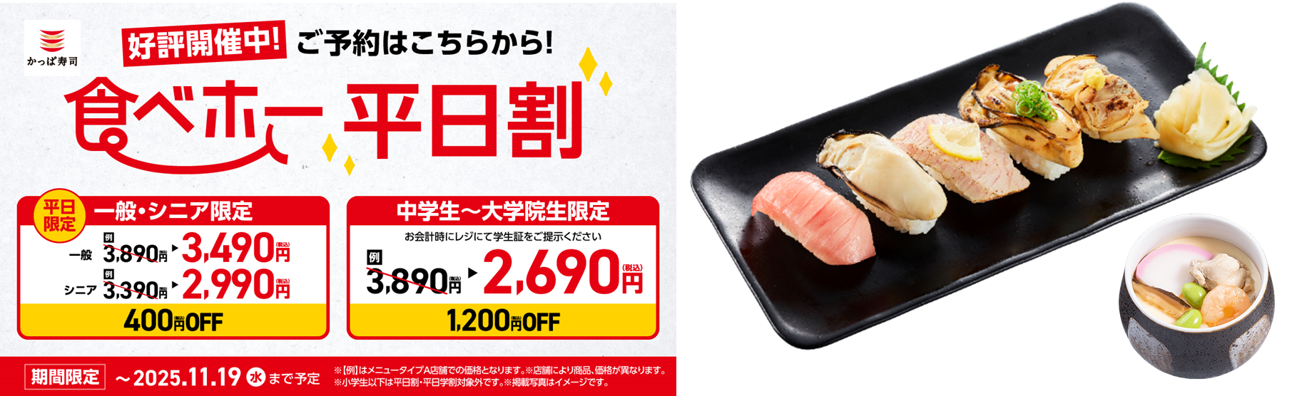 食べ放題メニュー『旬ネタ!期間限定5貫セット 茶碗蒸し付き』...