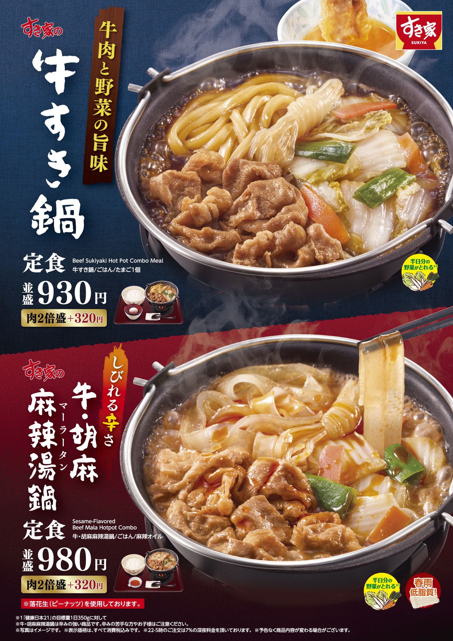 【すき家】「牛すき鍋定食」「牛・胡麻麻辣湯鍋定食」発売!今年...