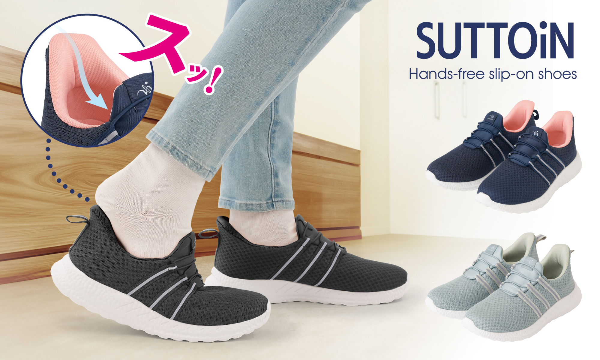 立ったままスッと履ける!軽くて快適なハンズフリーシューズ。