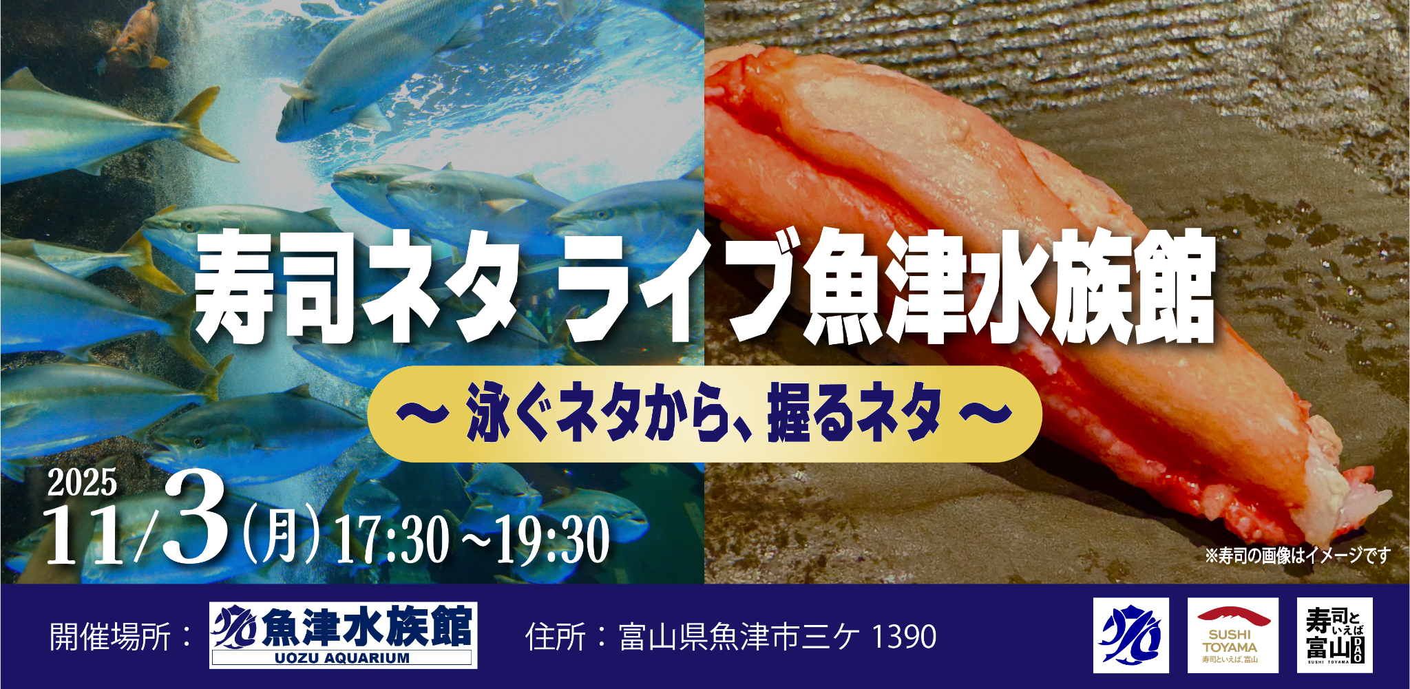 11/3(月) 寿司ネタ ライブ魚津水族館 ~泳ぐネタから、...