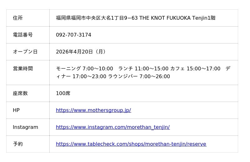 株式会社WAKAZE(本社:東京都渋谷区、代表取締役CEO:稲川琢磨)が展開する「SummerFall Tap Cocktails」は、株式会社MOTHERS(本社:東京都、以下MOTHERS)が2026年4月20日に福岡にオープン予定のレストラン新店舗「MORETHAN CAFE RESTAURANT LOUNGE」(ホテル「THE KNOT FUKUOKA Tenjin」に併設)にて、自社店舗以外では初となるタップカクテルの導入を開始いたしました。