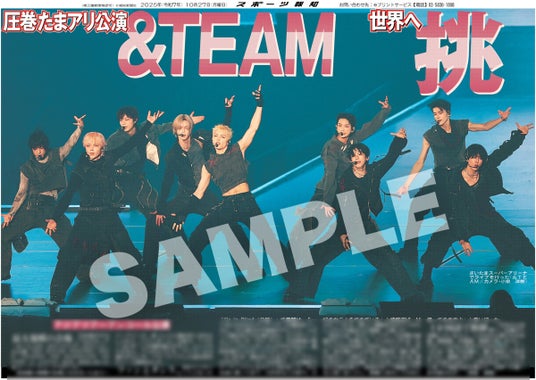 スポーツ報知を発行する報知新聞社(代表取締役社長・長谷川剛)は新聞の一部紙面をコンビニエンスストアのマルチコピー機からプリントできる「スポーツ報知コンビニプリント」サービスを展開中。スポーツ紙ならではの大きな写真を使った紙面をプリント版として販売しています。10月27日付掲載、日本発のグローバルグループ「&TEAM」のアジアツアーのアンコール公演「2025 &TEAM CONCERT TOUR 'AWAKEN THE BLOODLINE' ENCORE in JAPAN」の様子を伝える紙面を発売中。全員パターン4種と個人別9種の合わせて13種類になります。