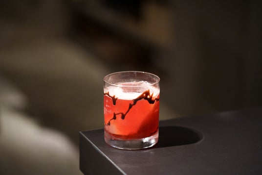 限定カクテル「Melted Mood」 ウイスキーの深みをベースに、クランベリーの華やかな香りを重ねた大人のカクテル。グラスにコーティングしたチョコレートがゆっくりと溶け出し、時間とともに甘さとコクがほどけていきます。ひと口ごとに表情が変わる、バレンタイン限定の一杯です