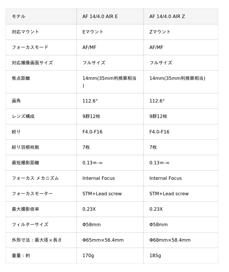 ・フルフレーム対応、14mmの超広角レンズ