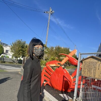 神戸市内のねりもの工場。敷地内には〈ほぼカニ様〉が祀られています