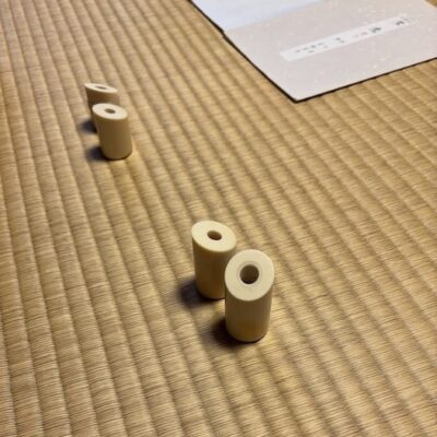 これは、先日、一絃琴のお稽古の見学に伺ったときに撮らせていただいた、演奏するときに指にはめる、盧管(ろかん)という爪です。