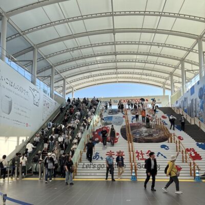 ふと、「こじまがはじめて万博で撮った写真ってどんなんだったっけ」と思い、カメラロールを遡ってみました。昨年の5月13日、1枚目は駅の階段を登る前。