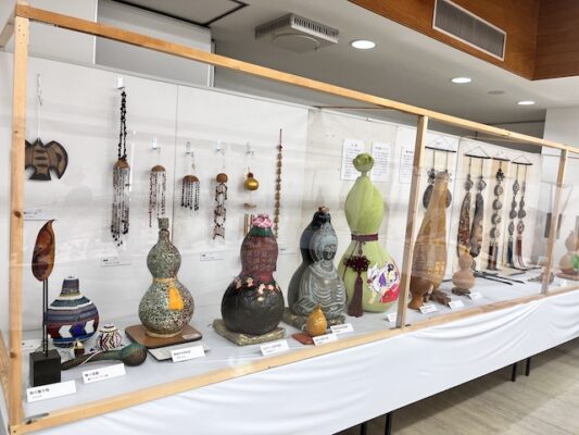 小菅さんは神奈川県相模原市にお住まいで、「田名ひょうたん会」の会長でもいらっしゃいます。ショーケースには、「田名ひょうたん会」の会員作品もたくさん展示されていました。