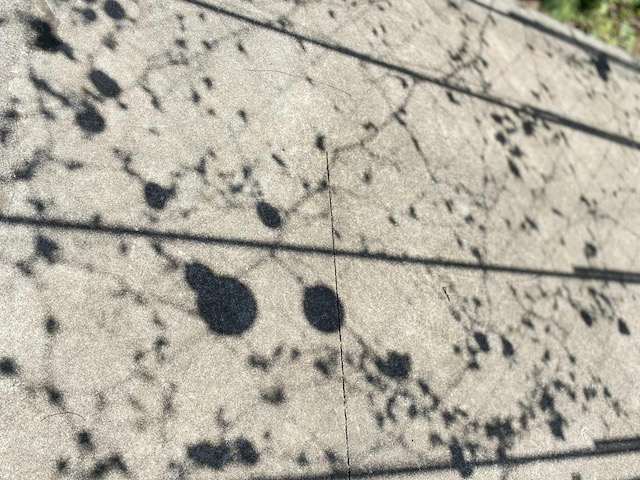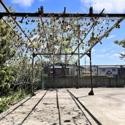 「iPhoneで撮った写真をお送りします。フラワーセンターにはひょうたん棚がありました。地面に落ちた影は楽譜のようでした」