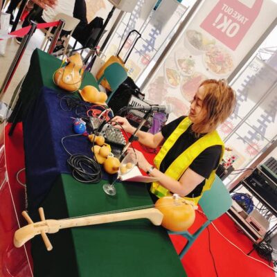 ノイズに近いひょうたん楽器の演奏は、おそらくほとんどのお客さまには「?」だったと思うのですが、興味をもって聴いてくださり、終わったあとに話しかけてくださった方も……。しばらくたってから、じわじわと喜びが胸の内に広がっていきました。(写真④)