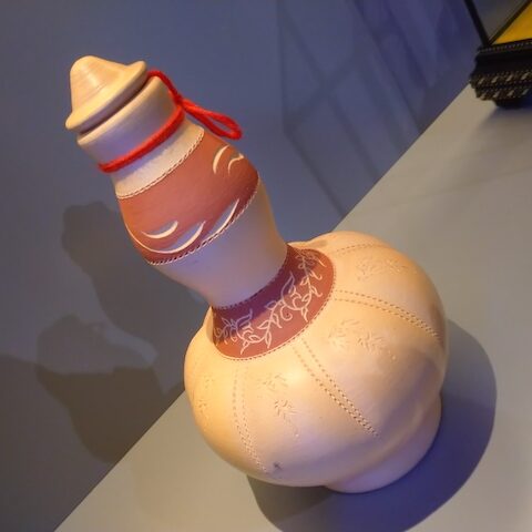 その後、ヒョータニストのしまじろうさんから「マレーシア館でもひょうたんを展示していましたよ!」という情報とお写真をいただきました(写真①②)。しまじろうさんは、わざわざスタッフに声をかけて、これが植物のひょうたんから作られたものであることを確認してくださったようです。私も「マレーシア館」に行って、自分の目で確かめたいなと思いつつ、なかなか行けず。
