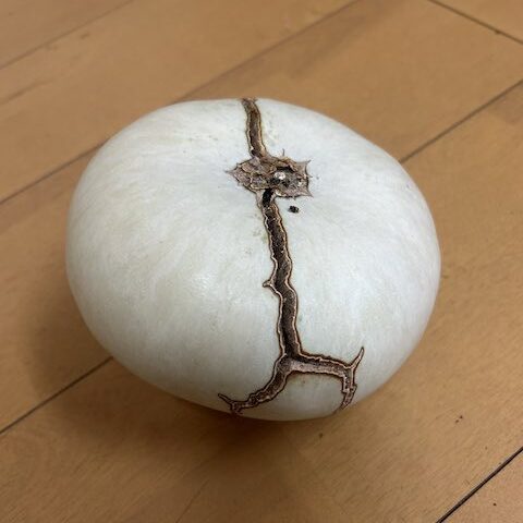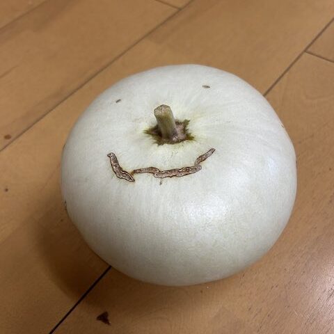 ちなみに、タレ目は虫食いか傷だそうで、偶然この位置にできたのだとか。すごいものが生まれましたね。時期的にもハロウィンの飾りにぴったりすぎる。