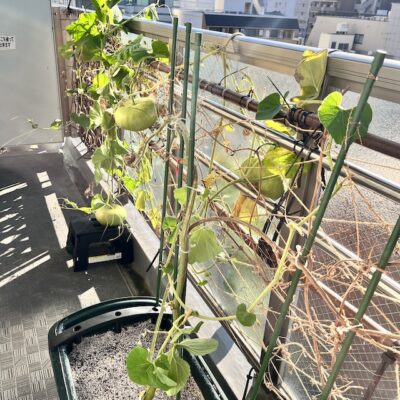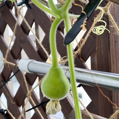 ベランダで栽培中のひょうたん、ユーホーの「アントニヌス・ピウス」の実、第二弾収穫しました!