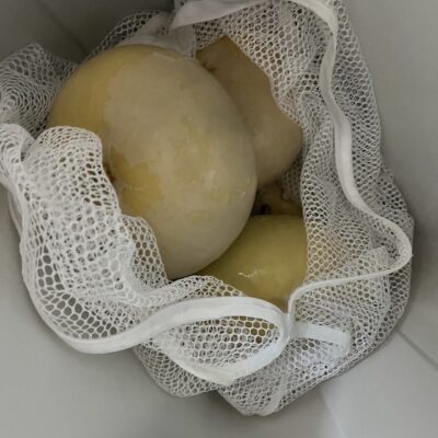 さて。収穫したひょうたんはこのままおいておくと腐ってしまいます。可愛いひょうたんたちのどこにも穴を開けたくないのですが、水浸けにするには穴を開ける必要がある。お尻にヒビが入った「8号」は、お尻に穴をあけることに決めました。