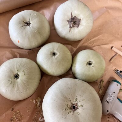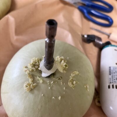 調子よく穴を開けてから、はっとしました。やはりユーホーはヘタがついているほうが可愛かったかも……。口部とお尻の穴開け、半分ずつにしたらよかったかな……!