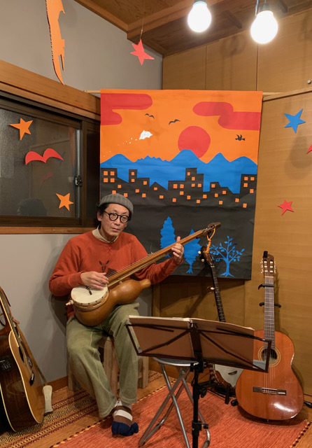演奏は、今回は《べんべん》1本で臨むことにしました。あんまり何にも決めずに思いつくままにベンベンと弾き始め、そのまま15分ほど弾き続け、そろそろいいかなというタイミングで終わりにしました。出演者の都合もあって再登場したりしながら、なんとかお役は果たせたかと思います。