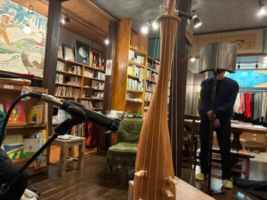誰かと混ざることの面白さにあらためて気づいて臨んだ12月1日の第 2回目のレコーディング。この日は一人で素材撮りをするつもりでしたが、その日別件でシンガーで絵描きのささきりょうたさんがたまたま訪ねてきてくれる日だったので、レコーディングにお付き合いをお願いしたのです。