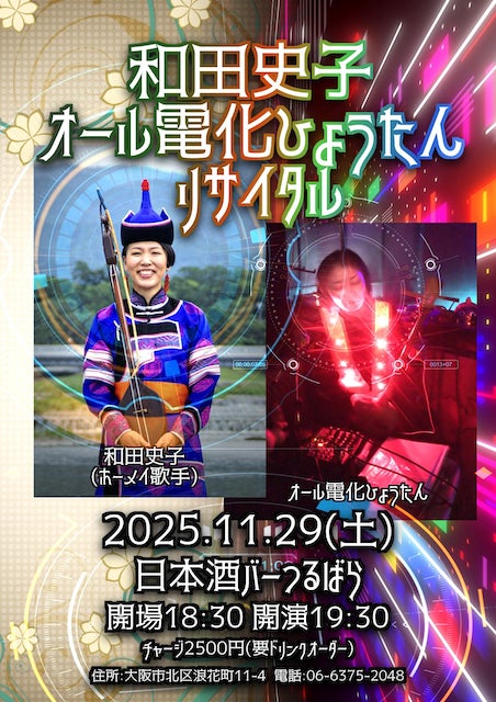 私は「丸黄うりほ」として文章を書くほかに、「DJきー???」名義でDJ、「オール電化ひょうたん」としてひょうたん音楽(ソロ)、「ヒョータニスト・パーティ」としてひょうたん音楽のグループ活動をしています。今年のひょうたん音楽ライブの最終日は11月29日でした。会場は、大阪天満の路地裏にある知る人ぞ知る隠れ家バー「つるばら」。対バンは和田史子さん。私は「オール電化ひょうたん」(ソロ)のほうで出してもらいました。
