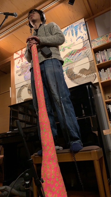 先週はあらたにお二人のゲストをお招きしました。お一人はアーティスト馮馳(Hyo ti)さん。でれろん暮らしその178でご紹介した美術家ですが、私の影響が多少あったのか、おならの音しかしないヘンテコな楽器を作ったという噂を聞き、これは絶対に面白いと確信して、どんな楽器なのかも確認せずにお誘いしました。