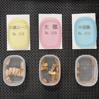 写真④をご覧ください。こちらが今年のラインナップ。全日本愛瓢会から有償配布していただいた3種類のタネを発芽させてみようと思います。
