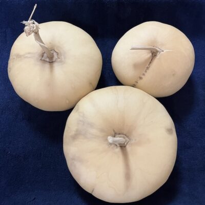 右の「中国瓢」は、「百成」や「十成」と同じくらいのサイズ、高さ20〜25センチほどの実がなります。くびれが強く、口部の長い形が特徴です。これも今までに栽培したことがない品種。比較的育てやすいときいているので、うまく苗になってくれたらヒョータニストのみなさんにもお配りしたいな。