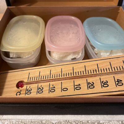 温度はちょうどいい感じです。でも、このままではタネが蒸し焼きみたいになってしまうかな?「大瓢」のタネが去年全滅してしまったのは、そのせいかもと思い直し、今年はプラケースの蓋を少しずらしておくことにしました。蓋を開けておくとタネを包んだペーパーが乾くので、朝に少し水分補給もしてみました。(写真⑧)