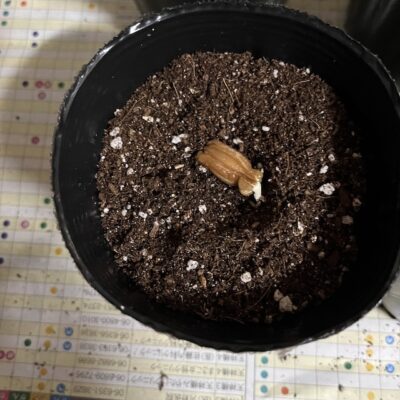 ④「大瓢エース」。根を下にしてタネをポット中央におきます