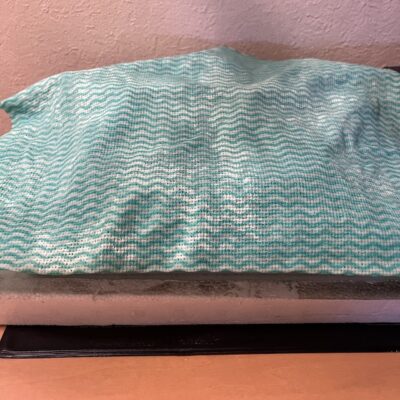 ⑦濡れた布巾を被せて育苗ヒーターマットの上へ